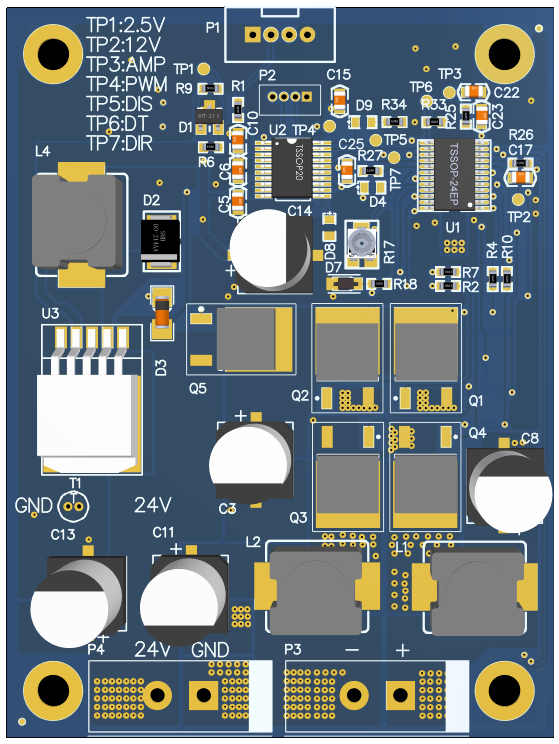 智能功率控制板:sLine端口X1,24V输入,24V双向H桥驱动,内置MCU处理器,包括AD采样3CH,数字IO4路,内置高精度基准电压源,大功率MOS,过流,过压保护电路